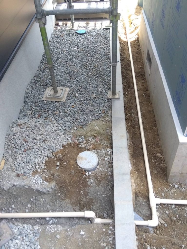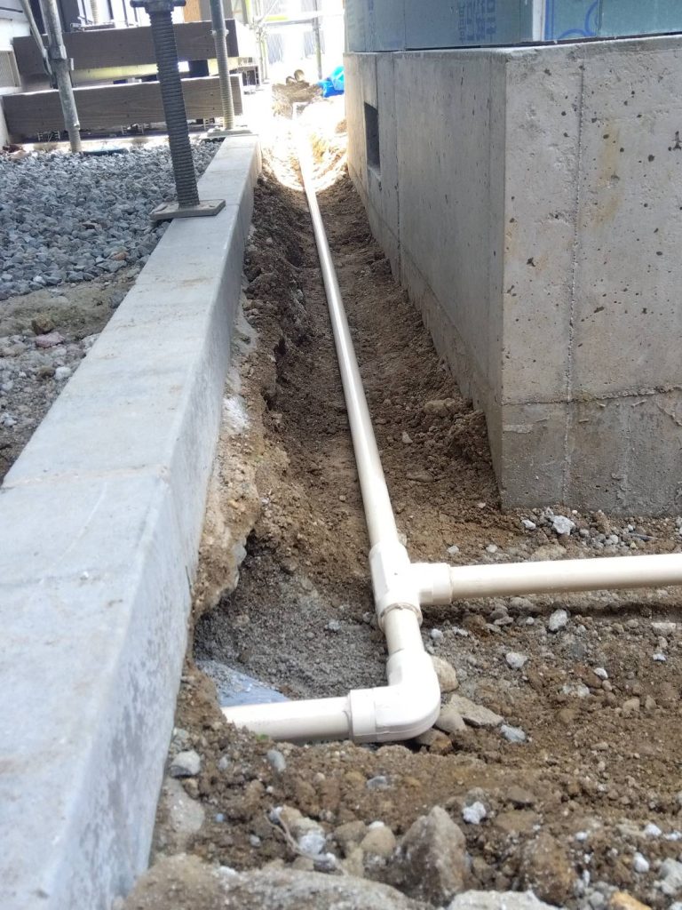 新築時に事前に仕込んでいたガス埋設配管工事の様子🔧
